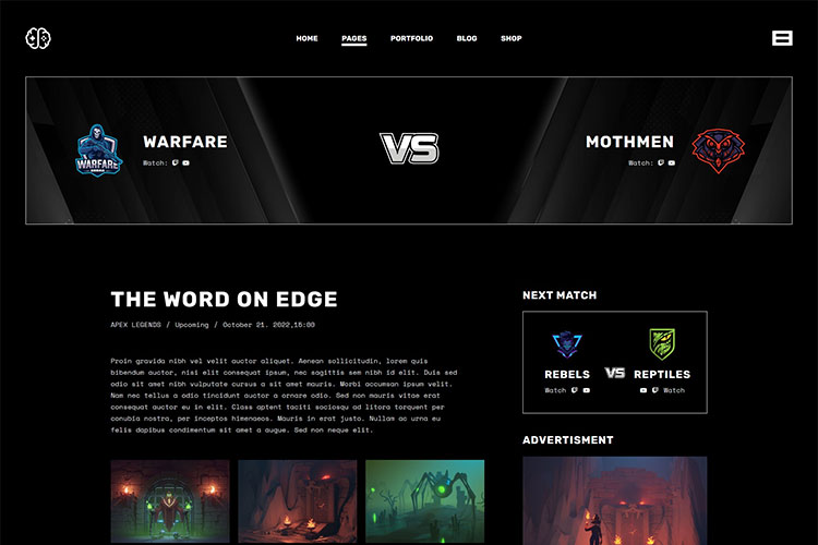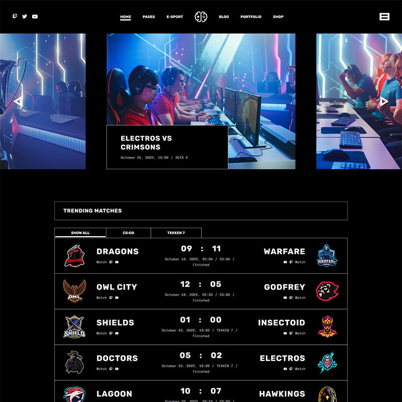 Artorias’ esports module comes with everything you’ll need to present your esports teams, matches as well as players.